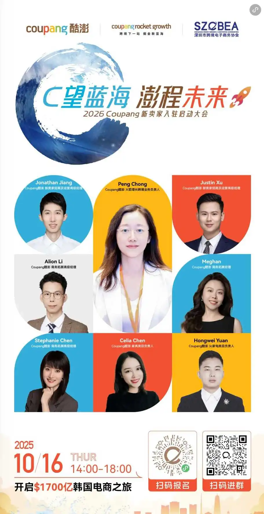 10月16日由深圳市跨境电子商务协会携手韩国酷澎联合主办「C望蓝海 澎程未来——2026 Coupang新卖家入驻启动大会」,从韩国电商市场掘金到多平台布局一站解锁!